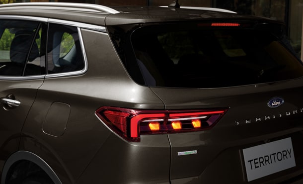 Thiết kế đuôi xe cũng sử dụng triết lý DNA toàn cầu của Ford tạo cảm giác bề thế và vững trãi, với chữ TERRITORY crôm kéo dài nối liền 2 cụm đèn hậu LED 3D.