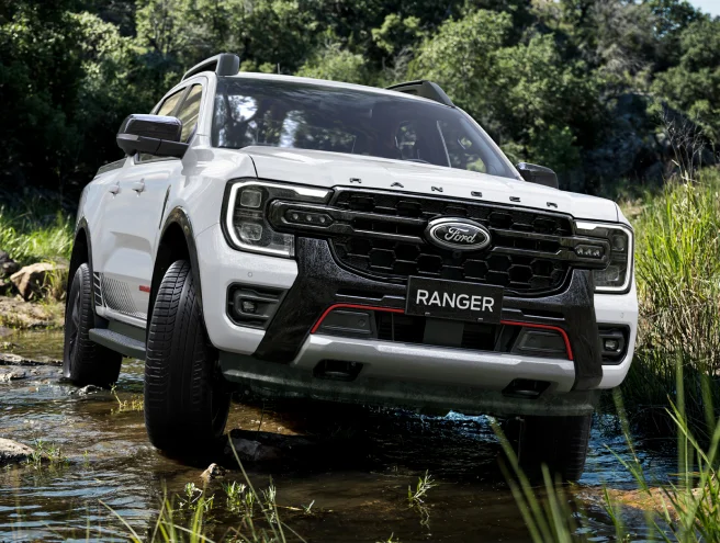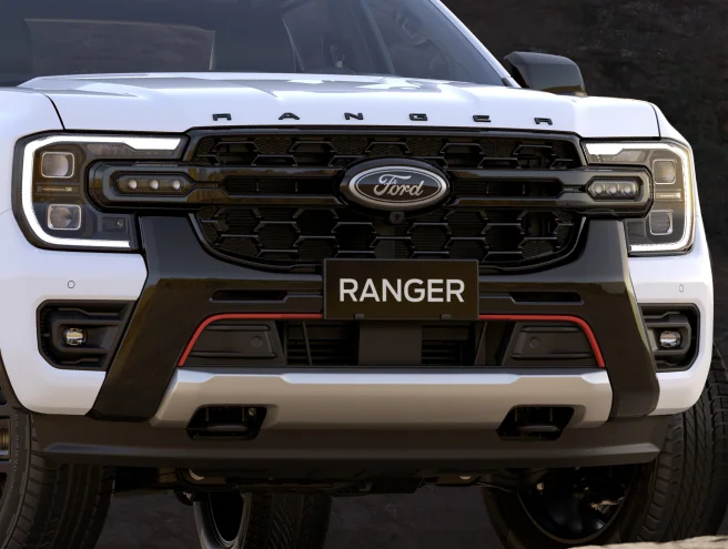Kết hợp cùng hệ thống đèn pha LED Matrix và dải đèn trợ sáng hai bên, lưới tản nhiệt thiết kế mới tăng thêm sự mạnh mẽ và cá tính cho Ford Ranger Stormtrak.