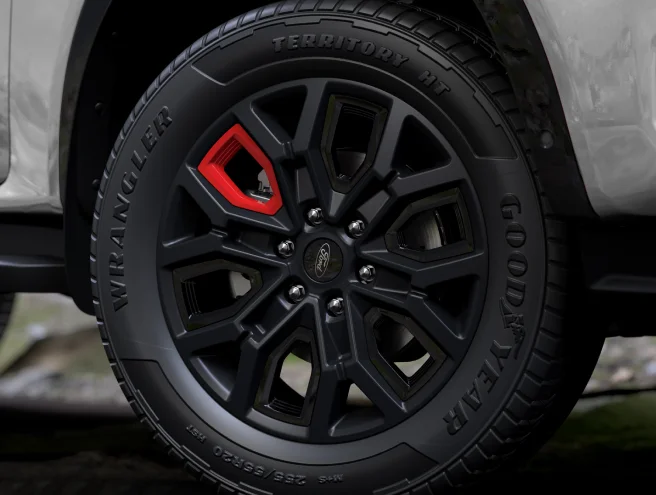 Bộ vành hợp kim 20 inch đen tuyền cùng điểm nhấn kết hợp màu đỏ và đen đặc trưng cho dáng vẻ thể thao hơn.